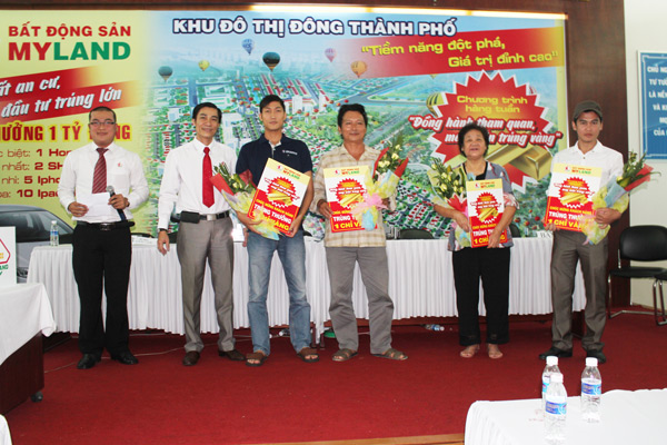 HÆ¡n 200 khách hàng Ä‘ã có mặt trên há»™i trưá»ng lầu 3 trụ sở chính công ty CP KD & PT BD. Những gương mặt hiện lên má»™t niá»m háo hức, chỠđợi kết quả được công bố từ phía ngưá»i dẫn chương trình. Thá»i Ä‘iểm công bố kết quả là lúc niá»m bất ngá» và hạnh phúc cá»§a những vị khách hàng được sướng tên. Ngưá»i xưa có câu “Äầu xuôi Ä‘uôi lá»t”, ngày hôm nay may mắn Ä‘ã mỉm cưá»i vá»›i há», giải thưởng má»™t chỉ vàng như tín hiệu cho sá»± thịnh vượng và giao dịch thuáºn lợi sắp tá»›i. CÅ©ng theo lá»i cá»§a má»™t vị khách hàng tham gia chương trình A. Khắc Võ cho biết: “Tình cá» biết đến và được má»i đến tham quan dá»± án Äô thị Äông Thành Phố tại Thành phố Má»›i Bình Dương, vì tò mò và hiếu kỳ qua lá»i giá»›i thiệu cá»§a nhân viên Sàn giao dịch MYLAND, tôi quyết định Ä‘i tham quan thá» xem như thế nào. Ban đầu chỉ định Ä‘i xem cho biết, nhưng khi đến tham quan thá»±c tế má»›i thấy được tiá»m năng cá»§a dá»± án. Tôi cùng gia Ä‘ình hiện Ä‘ang xem xét lá»±a chá»n mua má»™t ná»n đất tại Ä‘ây”. HÆ¡n 50 khách hàng có mặt trong buổi sáng ngày hôm nay Ä‘ã nhanh tay chá»n cho gia Ä‘ình mình những lô đất đầu tiên và đặt cá»c ngay trong đợt mở bán.